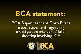 BCA statement regarding investigation of ICE fatal shooting in Minneapolis